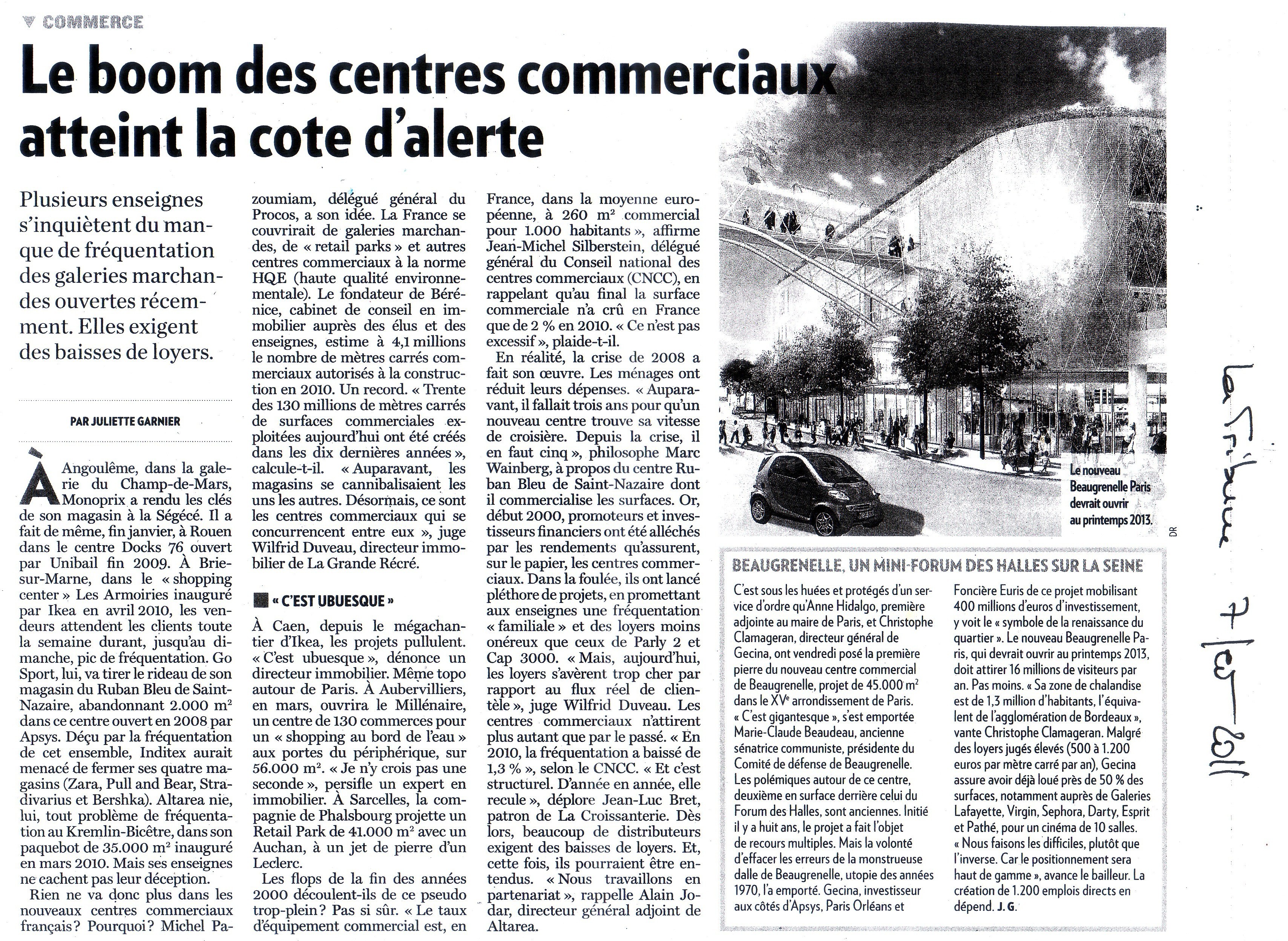 * voir aussi : Le boom des centres commerciaux atteint la cote d'alerte (La Tribune - 7.2.11)